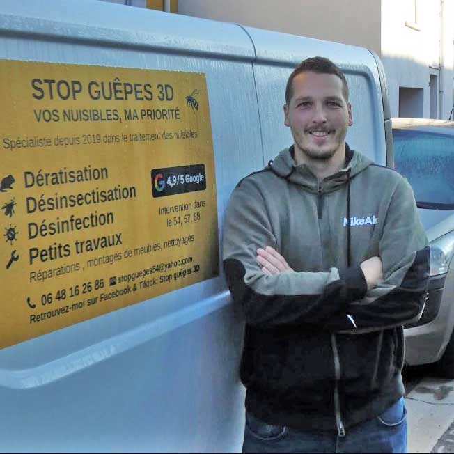 Basée à Dombasle et crée en 2019, Stop Guêpes 3D est spécialisée dans la destruction de nids de guêpes, frelons, dératisation et autres nuisibles volants et rampants Depuis sa création, l’entreprise connaît une croissance continue, portée par la qualité de ses interventions, sa réactivité et son professionnalisme.